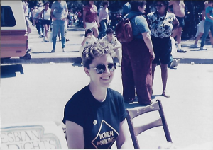Joss Eldredge was born in Southern California in November 1950, but she was drawn to Northern California and moved to Big Sur in her early twenties. In Big Sur, Joss fell in love with a woman and realized despite loving Big Sur, she needed to be in an area with a community of lesbians like her. After reading Lesbian/Woman by Del Martin and Phyllis Lyon, Joss packed her bags and her hound dog and left for San Francisco. She found her way to Daughters of Bilitis, the first lesbian political and civil rights organization, which was initially a secret social club for lesbians, and her world exploded overnight.